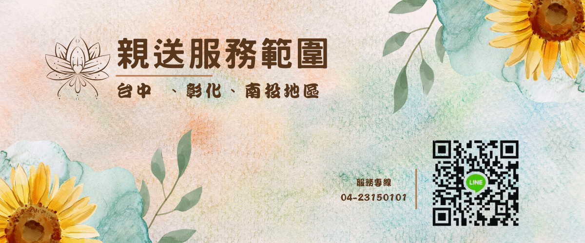 花材、葉材、花器、包裝紙因隨季節變化、廠商缺貨而造成有所不同時,會依主花不變的狀況下,依等值、色系、尺寸不變,插花師會自行調整。