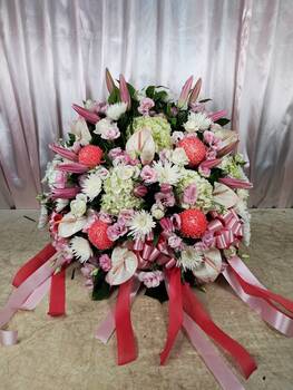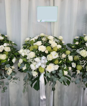 花藝設計:花球柱以鮮花製作,且需要特別設計,以不同型式的插法呈現的藝術花籃