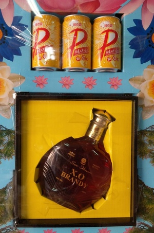 715七層罐頭塔(1瓶洋酒加飲料搭配乾糧) 對