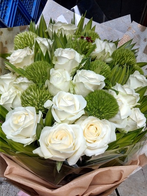 花材素材:20朵白色玫瑰花