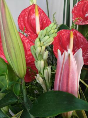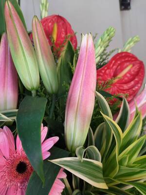 花材若有季節性、品質不佳或花材短缺等情形,會以同等價值的花材做適當的調整。
